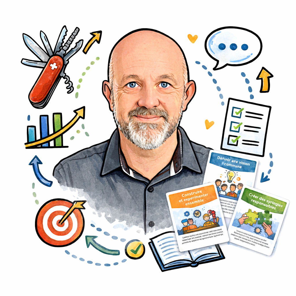 Aujourd’hui, je consacre une partie de mon énergie à peaufiner de nouvelles stratégies éducatives, en m’appuyant sur la facilitation visuelle, l’étude des leviers de la Qualité de Vie et des Conditions de Travail (QVCT), et l’animation de la Fresque de la Performance Collective.