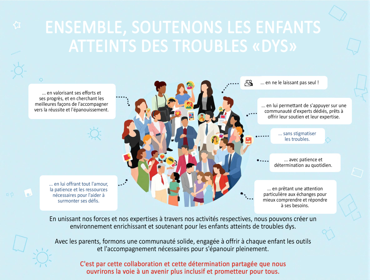 Les troubles "Dys" présentent des défis, mais avec les bonnes stratégies et ressources, les enfants peuvent réussir et s'épanouir. Nous encourageons les parents, les éducateurs et les professionnels à partager leurs expériences et conseils dans les commentaires.